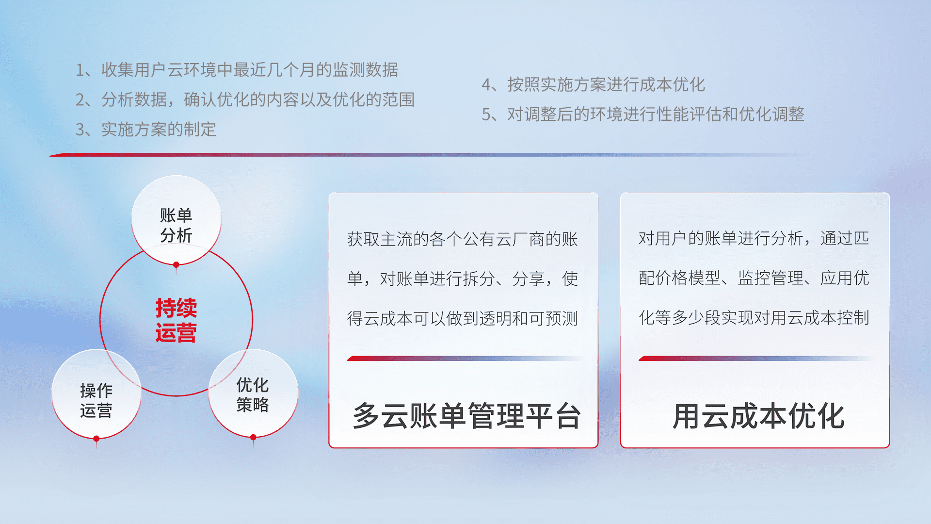 监控业务系统资源开销,,对资源的消耗精确计量,,,实现费用的透明化管理,,,不断提升资源使用率,,调整资源购买方式,,,,降低资源费用成本,,用云成本可预测、、、、用云费用可优化,,,,云资源配额有据可依。。。。